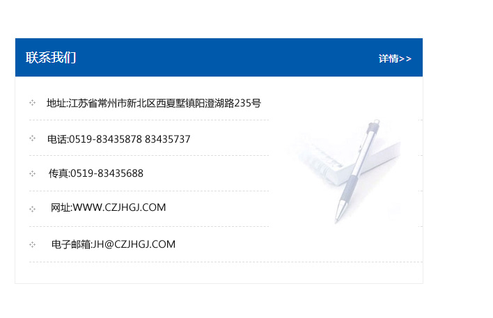 傳真:0519-83435688    郵編:213135    網址:WWW.czjhgj_com.lai980.com    電子郵箱:JH@czjhgj_com.lai980.com